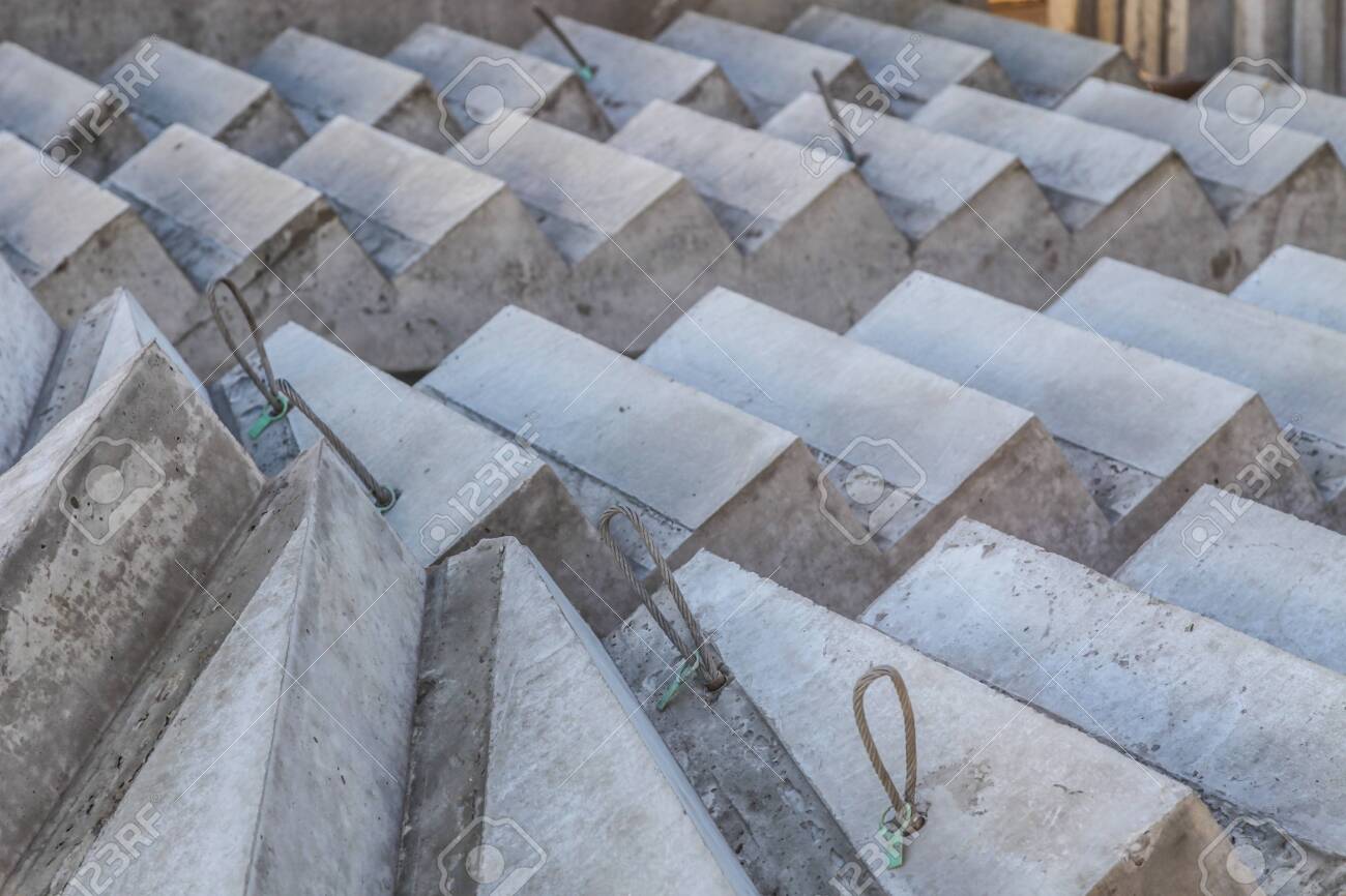 Precast Concrete Stairs In Element Stock Ready For Transport Stock Photo, Picture And Royalty Free Image. Image 150871021.